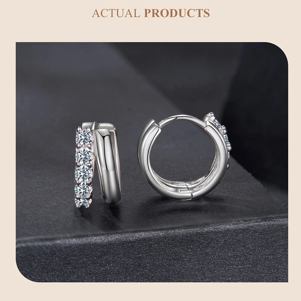 BAMOER 0.3CT Double-layer Moissanite Huggies 925 Silver Sparkling Hoop Earrings for Women