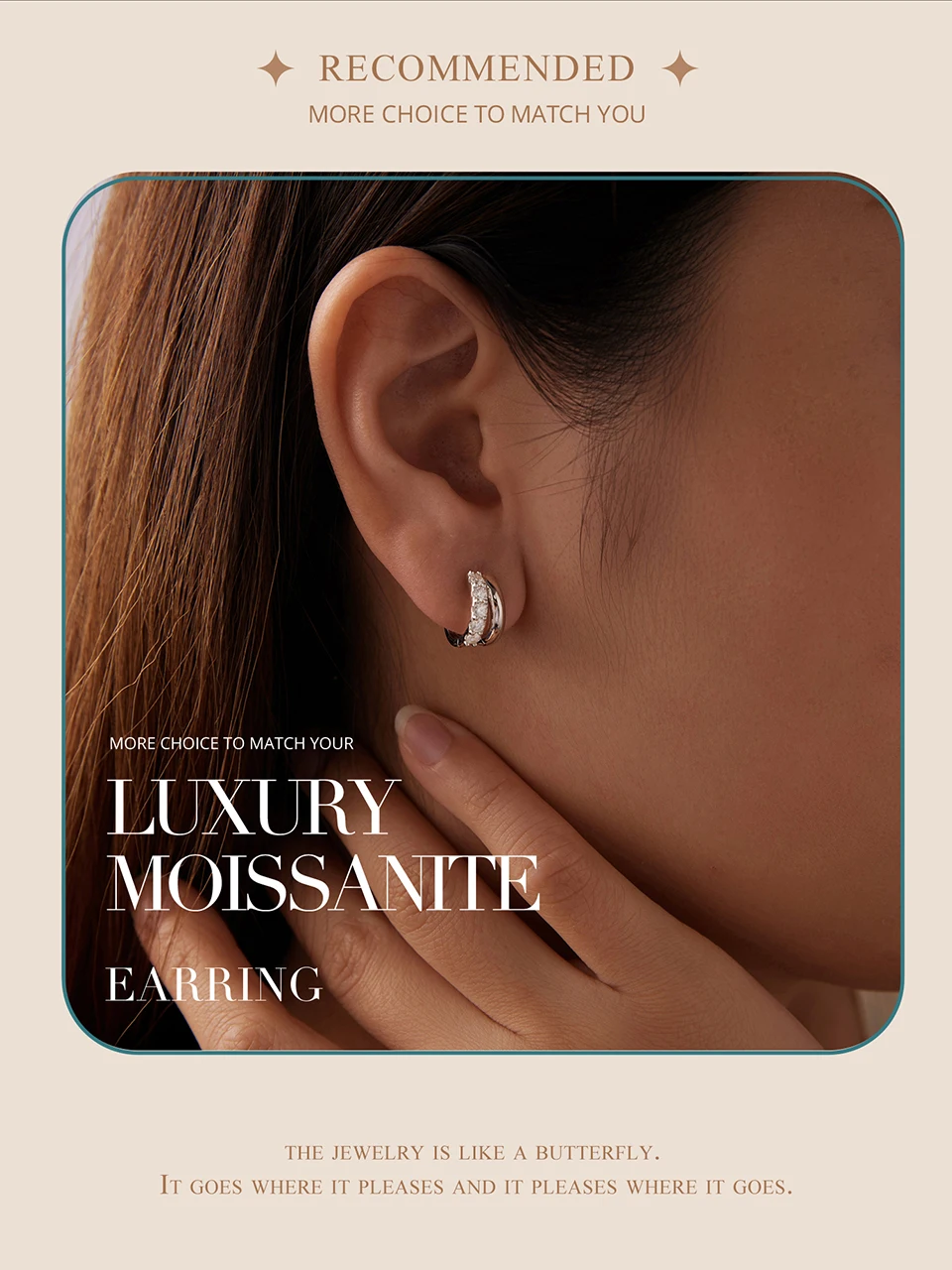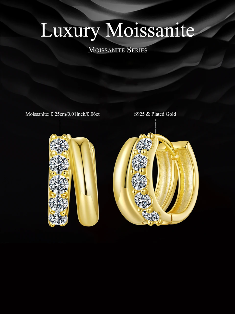 Featuring brilliant moissanite stones set in a delicate double-layer design, these earrings are perfect for daily wear or special occasions. Their hypoallergenic quality ensures comfort for sensitive ears, making them an ideal gift for anniversaries, engagements, or celebrations. Each pair comes in a beautiful jewelry box, ready to delight.