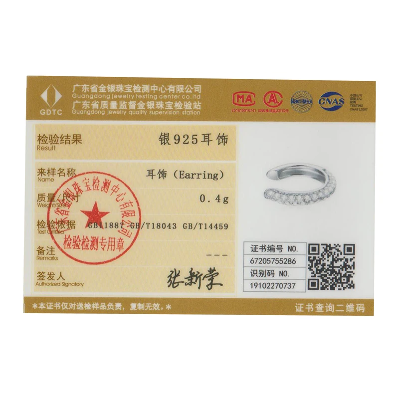 BAMOER 925 Sterling Silver CZ Mono-Earring Clip – Platinum Plated Stud for Women
