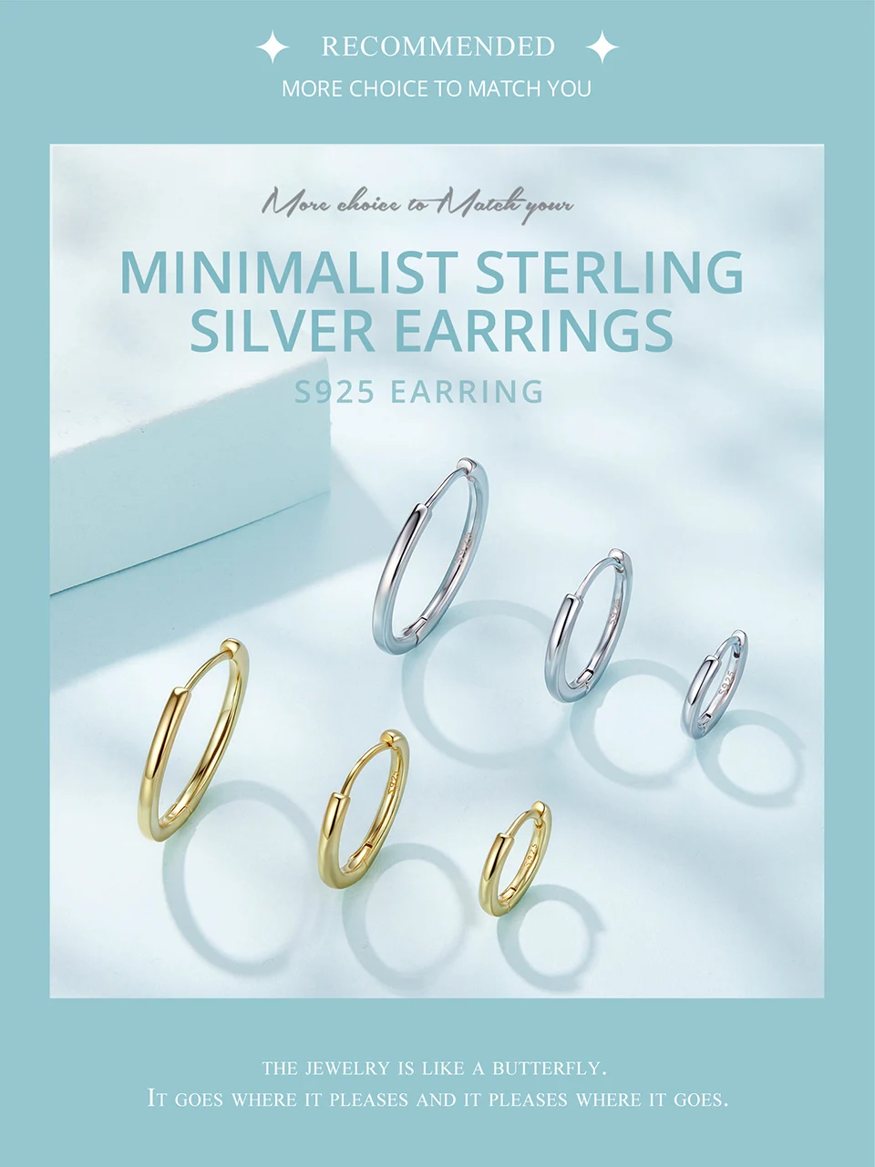 BAMOER 925 Sterling Silver Minimalist Huggie Hoop Earrings
