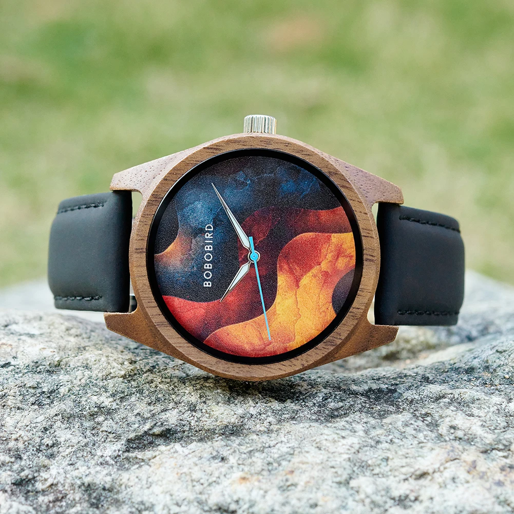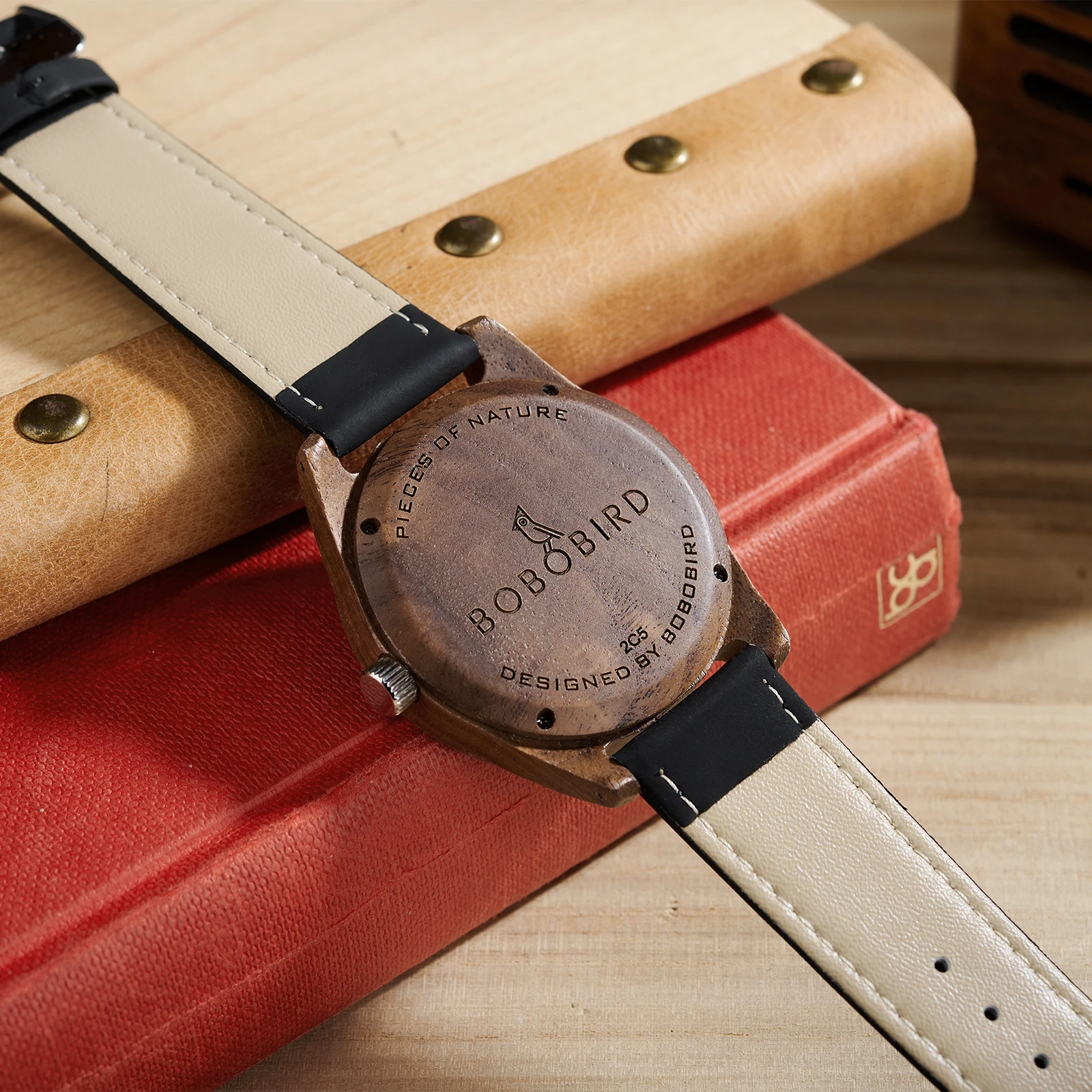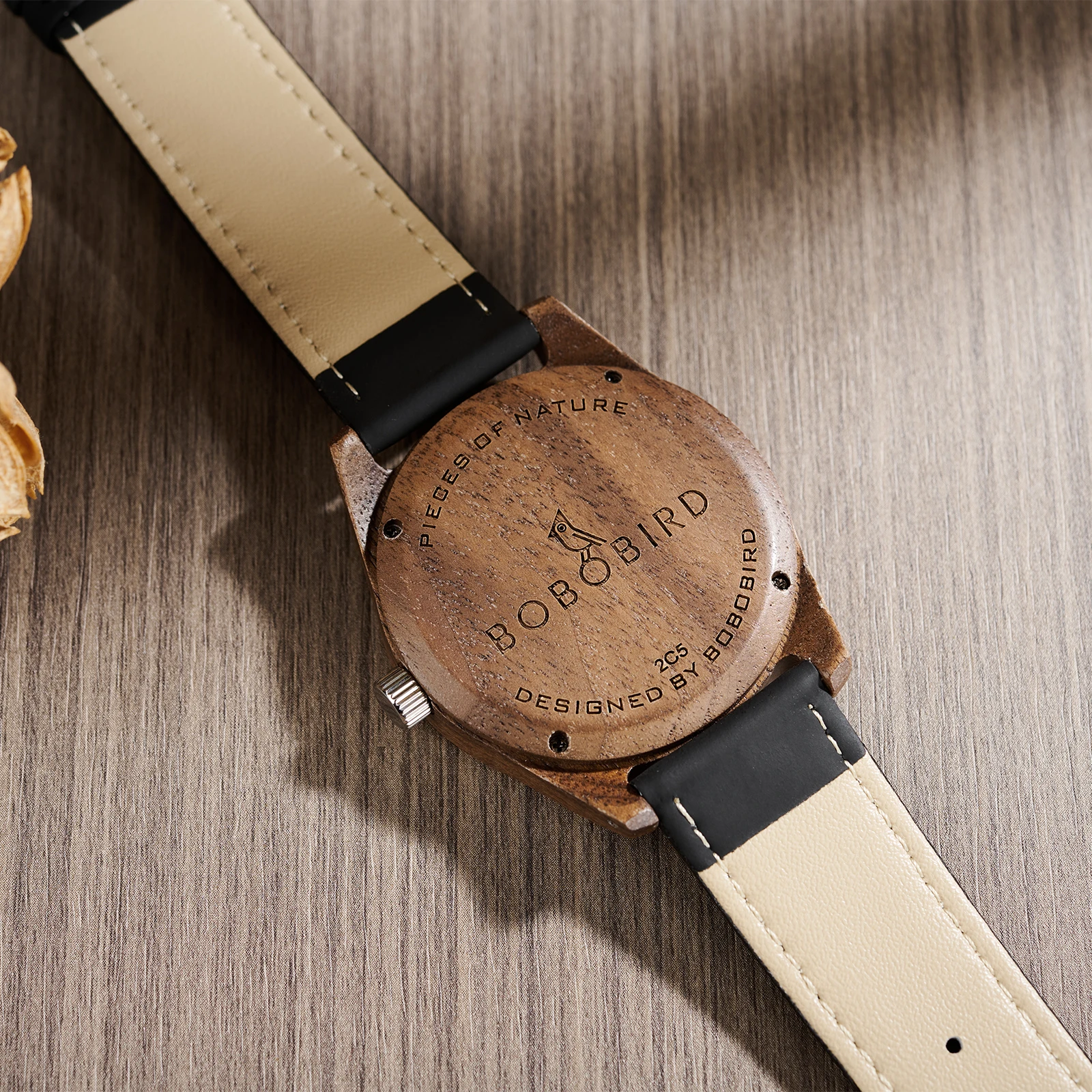 Discover timeless craftsmanship with the BOBOBIRD 2025 Wooden Quartz Watch, available exclusively at MANOVA STORE. This elegant timepiece combines the warmth of natural walnut wood with the sophistication of a sleek black genuine leather strap. Its minimalist, numberless dial design offers a clean, modern look perfect for both business and casual wear.