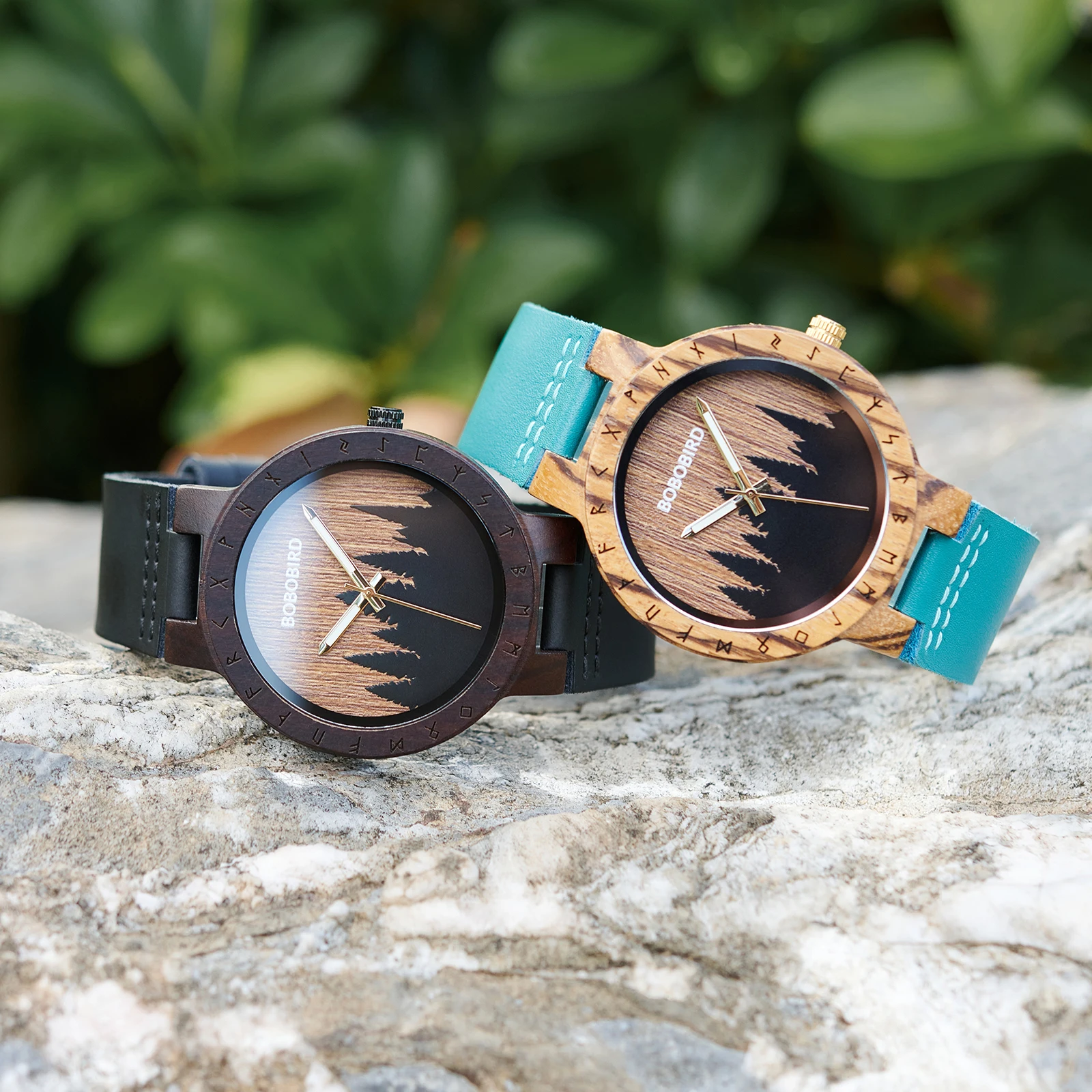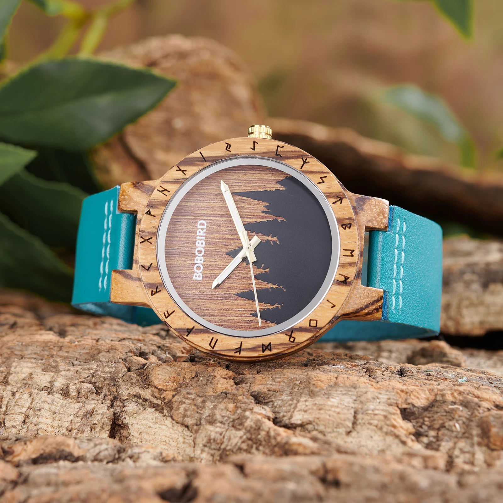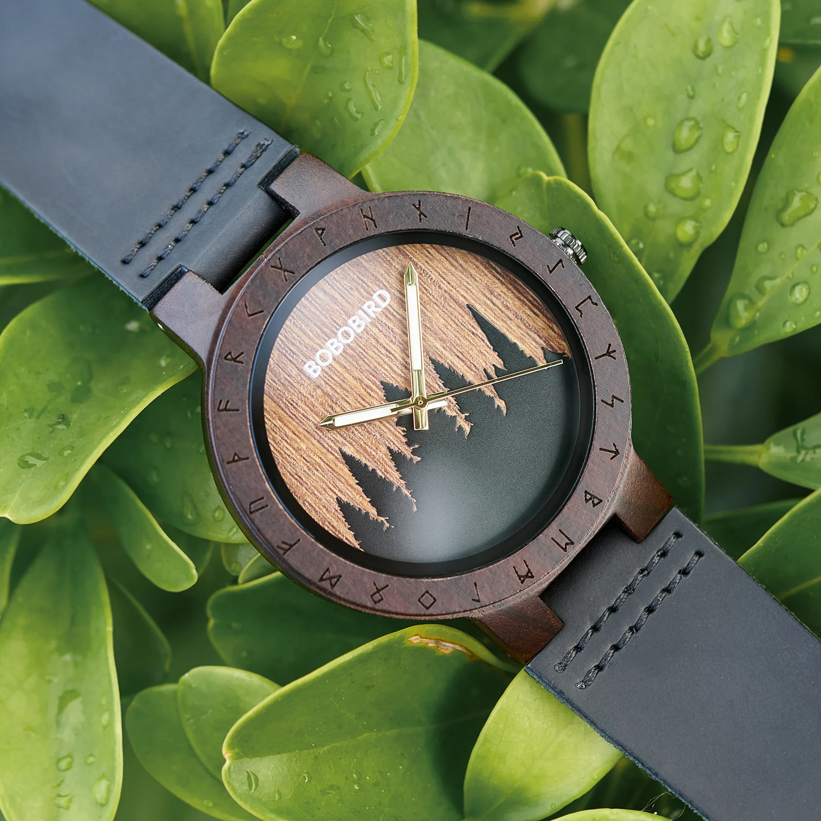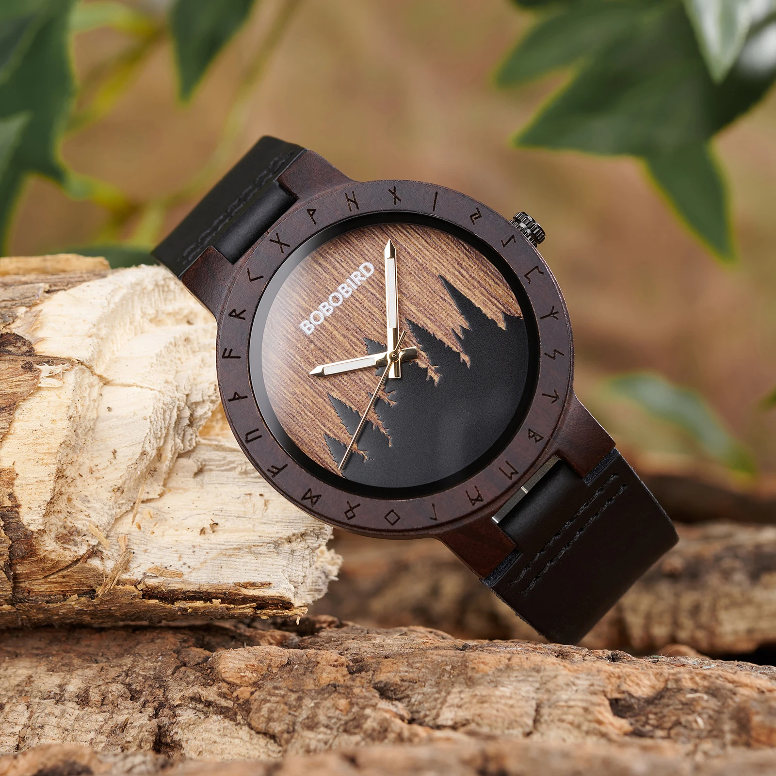 BOBOBIRD Viking Symbol Wooden Quartz Watch – Men’s Forest Design with Gift Box
