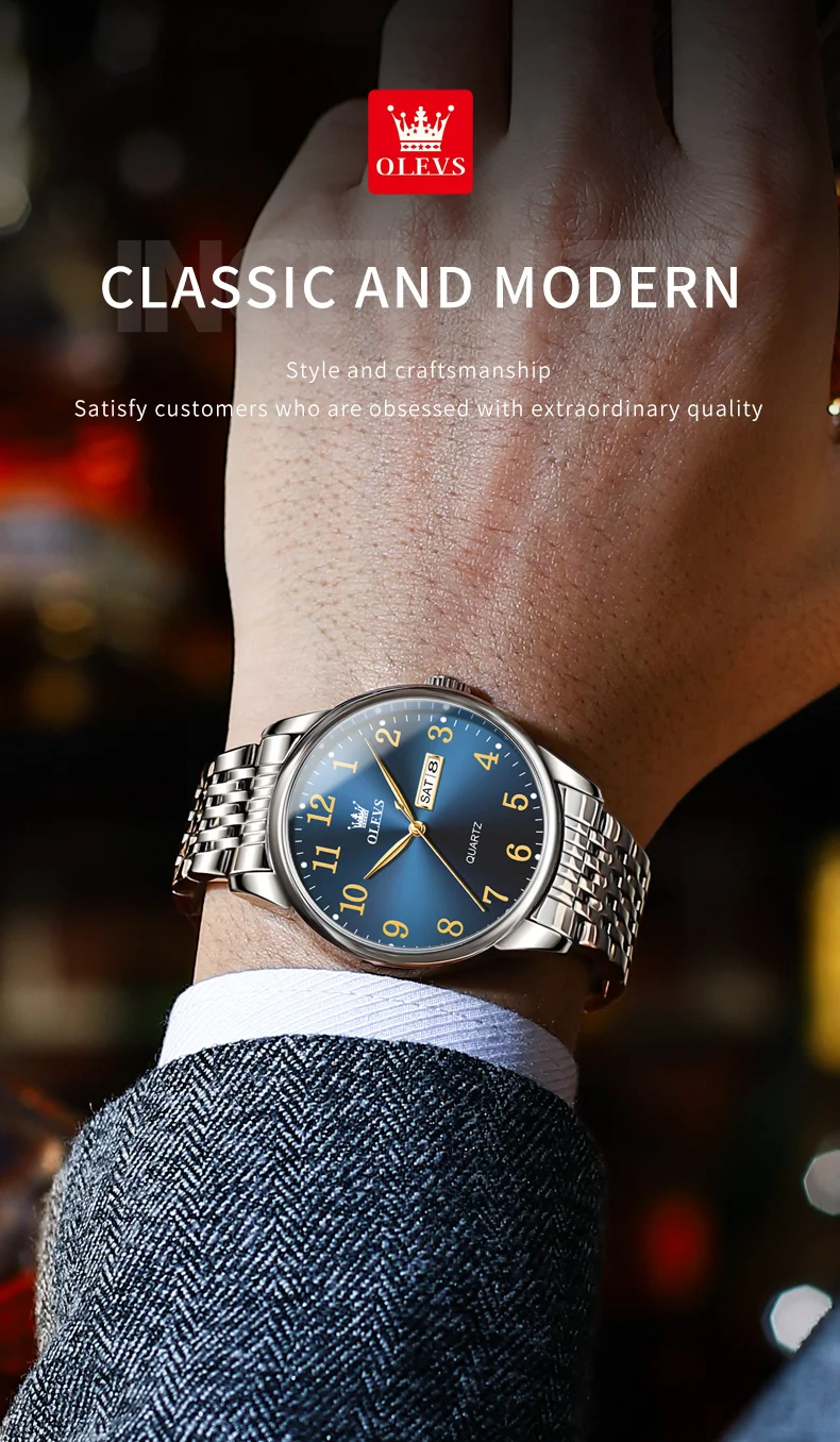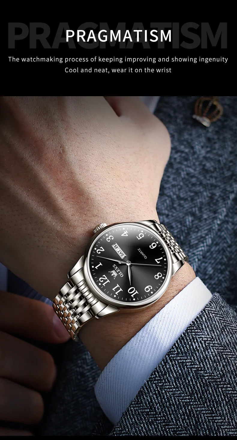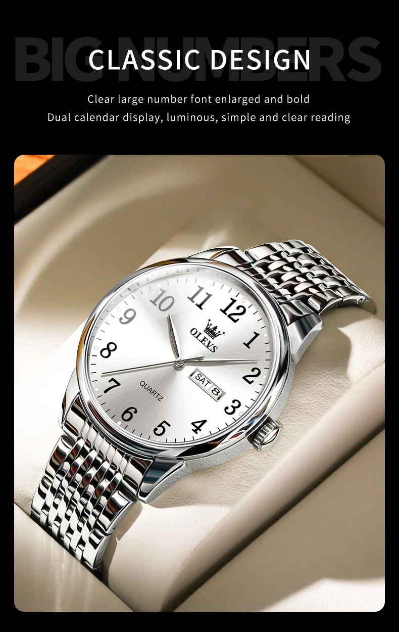 OLEVS Men’s Luxury Quartz Business Watch – Stainless Steel, Waterproof, Simple & Elegant Design