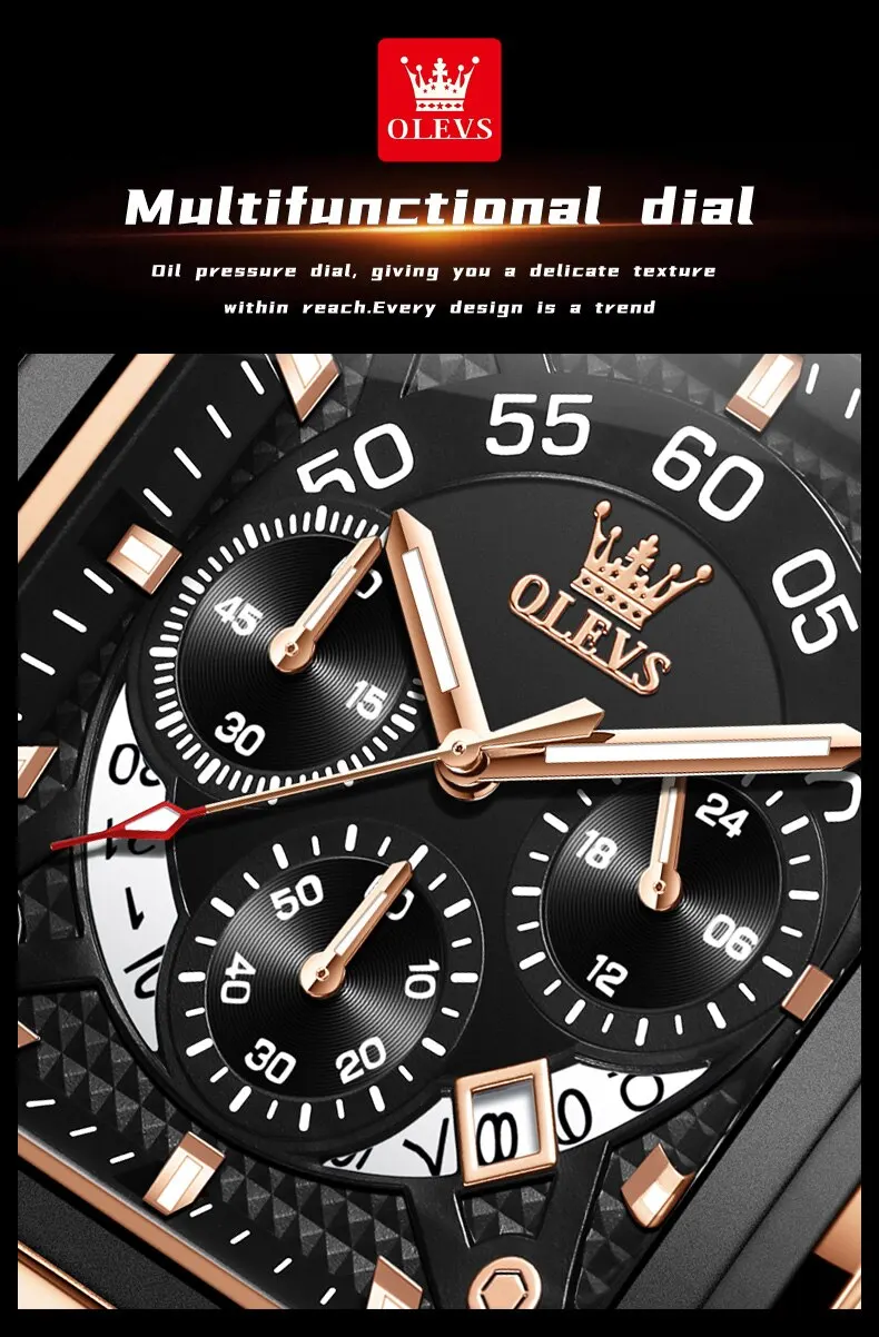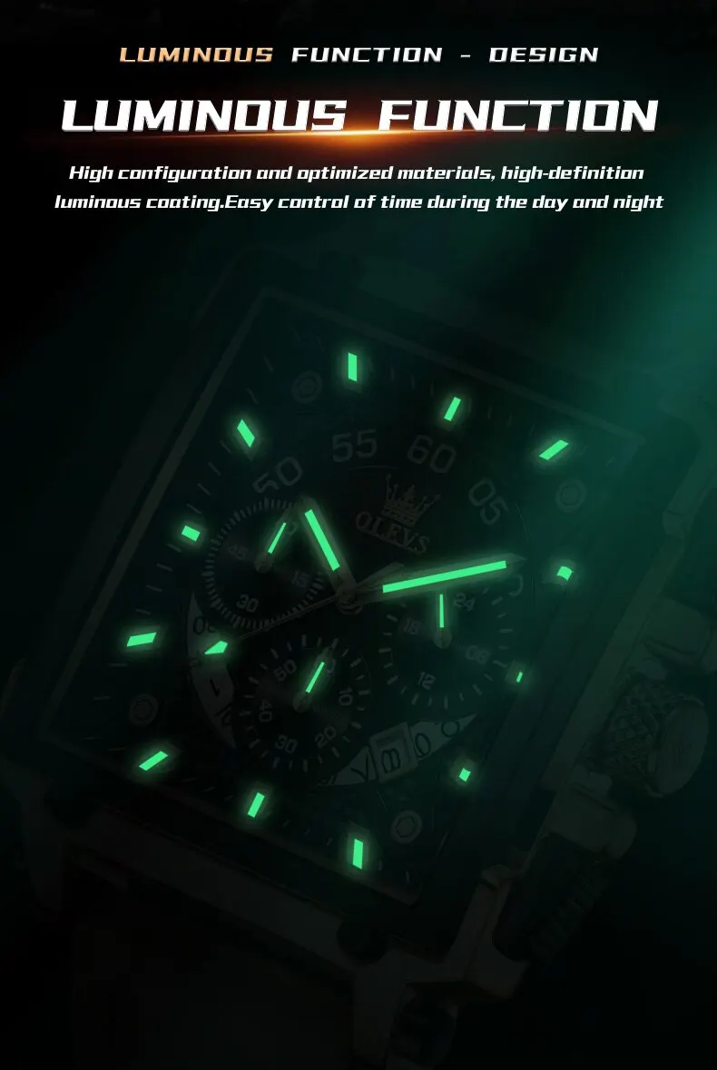 • Top Brand Qualities :Olevs is a top brand in male watches, known for its superior quality and durability. This ensures that you are getting a product that meets high standards.